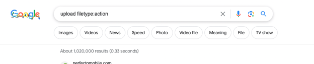 Another perspective is to ask how widely is struts2 deployed? Here, a little search engine skills can be of great help. Struts2 implements a specific type of URL schema, which ends in .action. Knowing that this vulnerability uses this handle, we can simply use search operators to seek out potentially affected services that provide upload forms.
