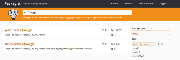 Even today, benign clones and forks of "csrf-magic" exist on GitHub and distribution registries like Packagist, the leading repository of PHP packages. At this time, these appear to be safe to use, but we'd still advise consuming the project from its official source.